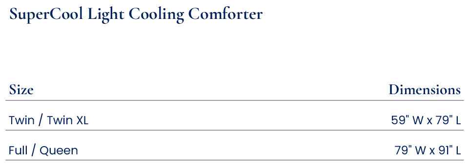 SuperCool Light Comforter Size Guide